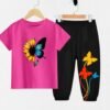 Neon”Butterfly”Long T-Shirt And Pant Set